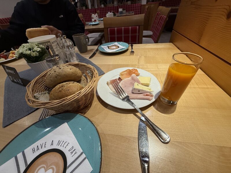ドイツ研修中は日頃の倍以上毎日10キロ以上歩くことが多いので、朝食がいつも以上に待ち遠しい。シュバルツバルト周辺のホテルの朝食は特に素晴らしく、もみの木のチップで燻製された名物ハムが並びます。シンプルだけどドイツパンも美味しく、ついつい食べ過ぎてしまいます。