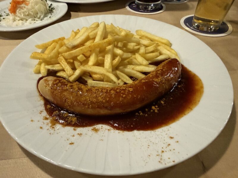 夕食は カリーブルスト。