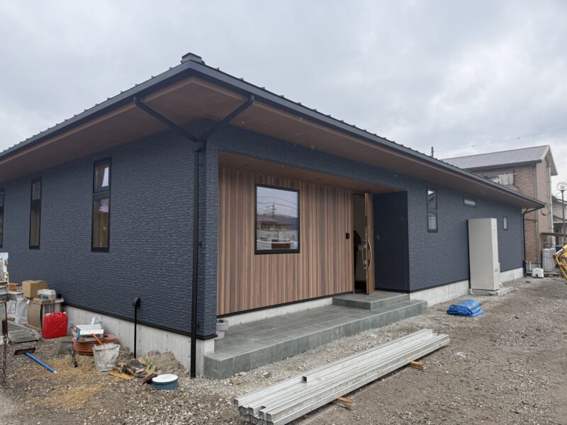 黒と木目のバランスが印象的な外観。シンプルながらも存在感のある佇まいでした。